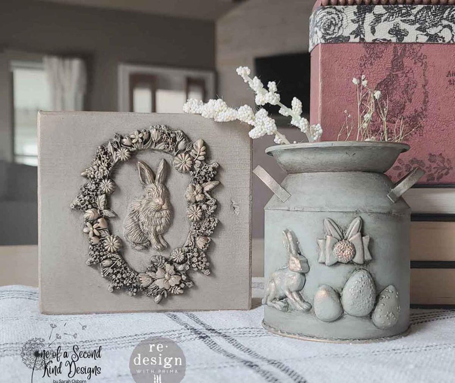 Easter Wreaths decor mould by Prima Re-Design featuring rabbits, botanicals , eggs and a bow. Can be used for a variety of purposes including applying to furniture, journal fronts , 3-D home decor, baking cookies or creating edging on frames.