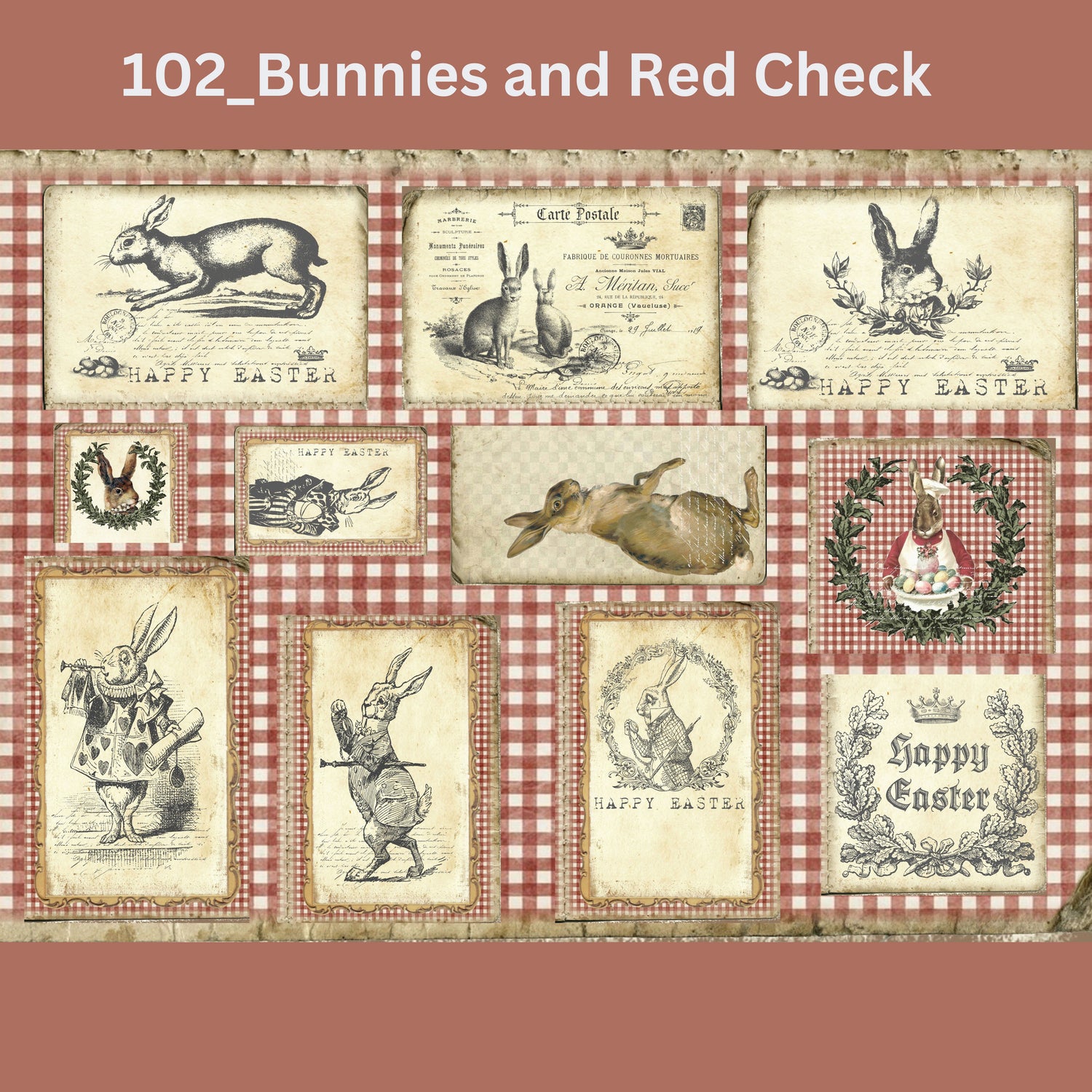 Bunnies & Red Check Decoupage Tissue - Deborah Bucher Designs