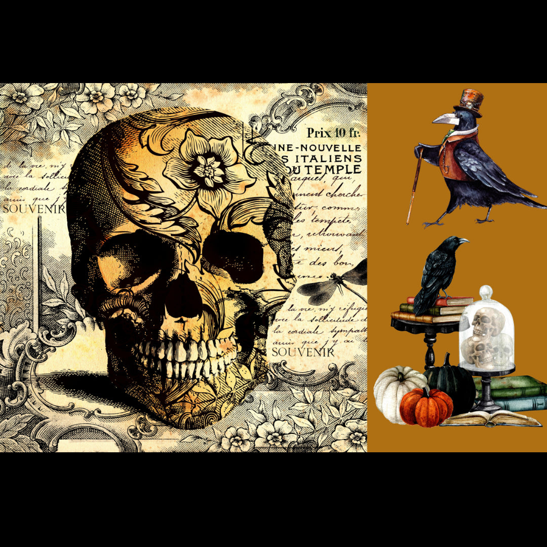 Halloween Sugar Skulls & Crows Decoupage Tissue - Deborah Bucher Designs
