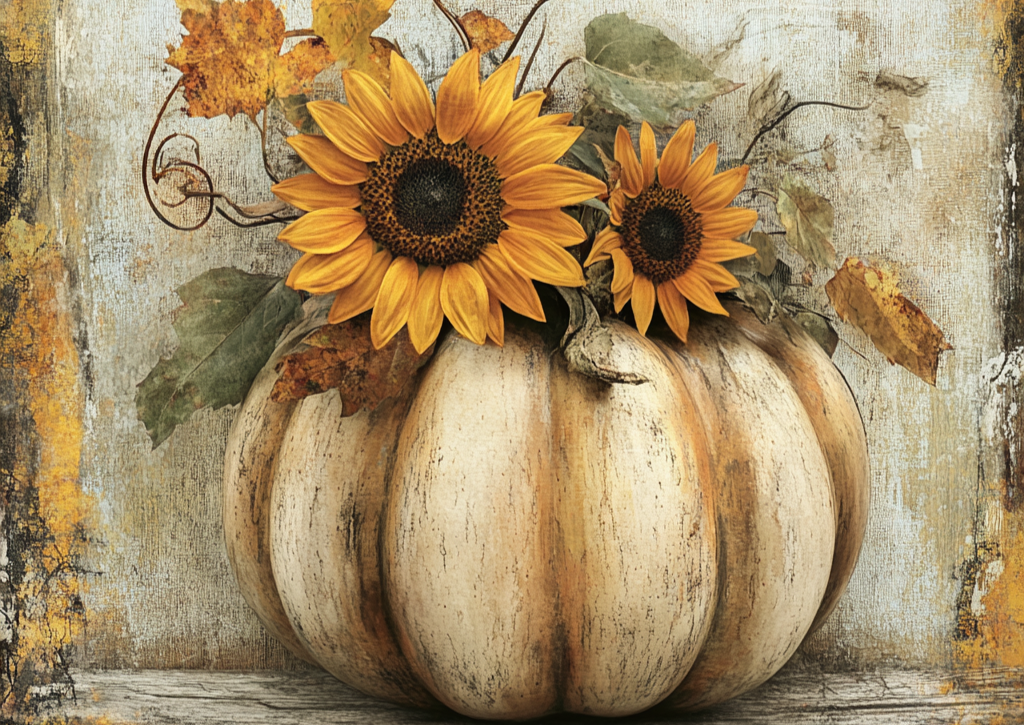 Rustic charm meets golden sunshine! Pumpkin Bloom is fall’s favorite centerpiece—where creamy farmhouse pumpkin tones cradle bright, cheerful sunflowers and dancing autumn leaves. It’s cozy, it’s classy, and it practically radiates sweater weather vibes.