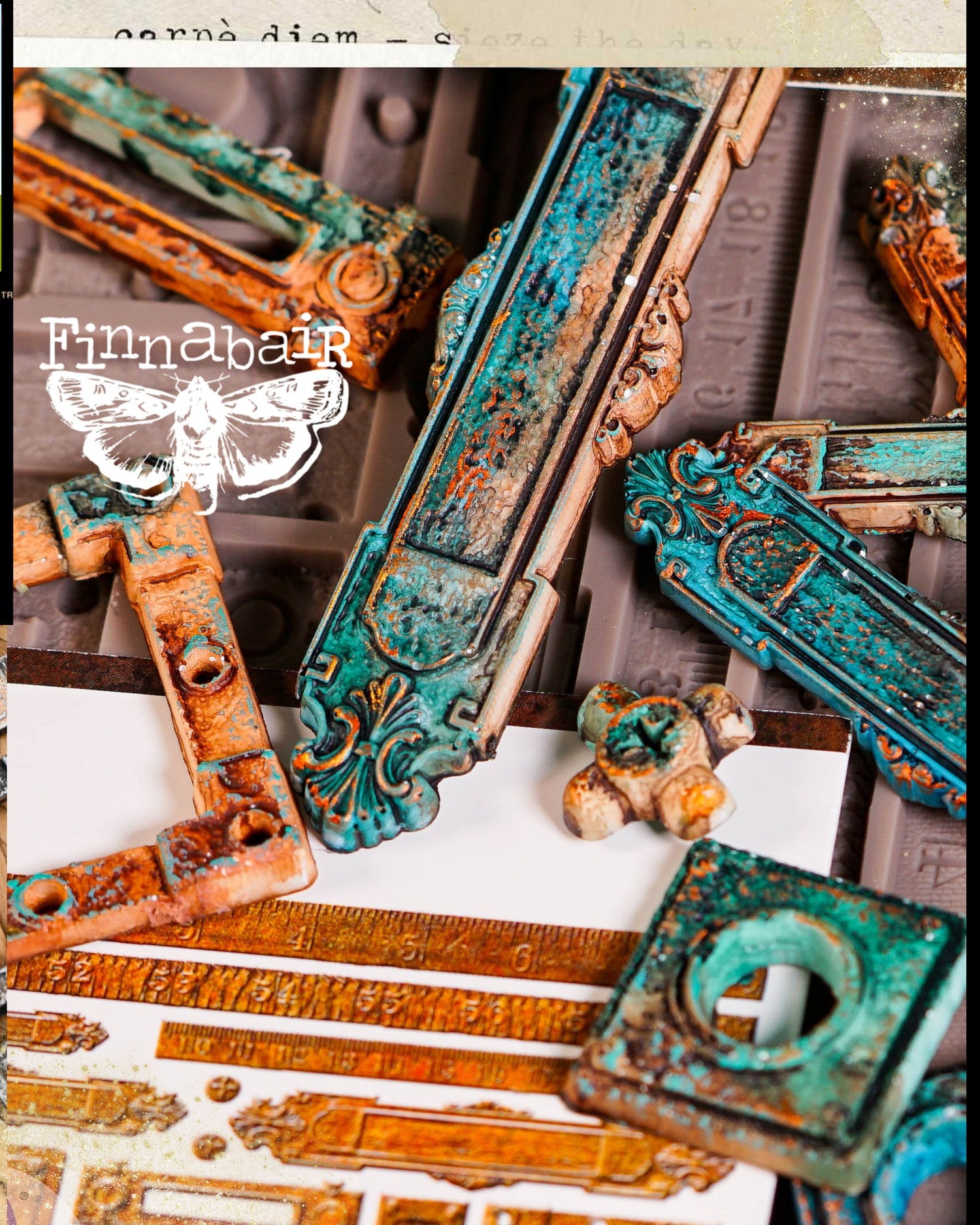 A bold mix of vintage rulers, tags, frames, and plates—this mould is packed with finely detailed elements made for layering, bordering, and adding extra structure to mixed-media builds. Use it to frame focal points or create background texture with a vintage-industrial touch.