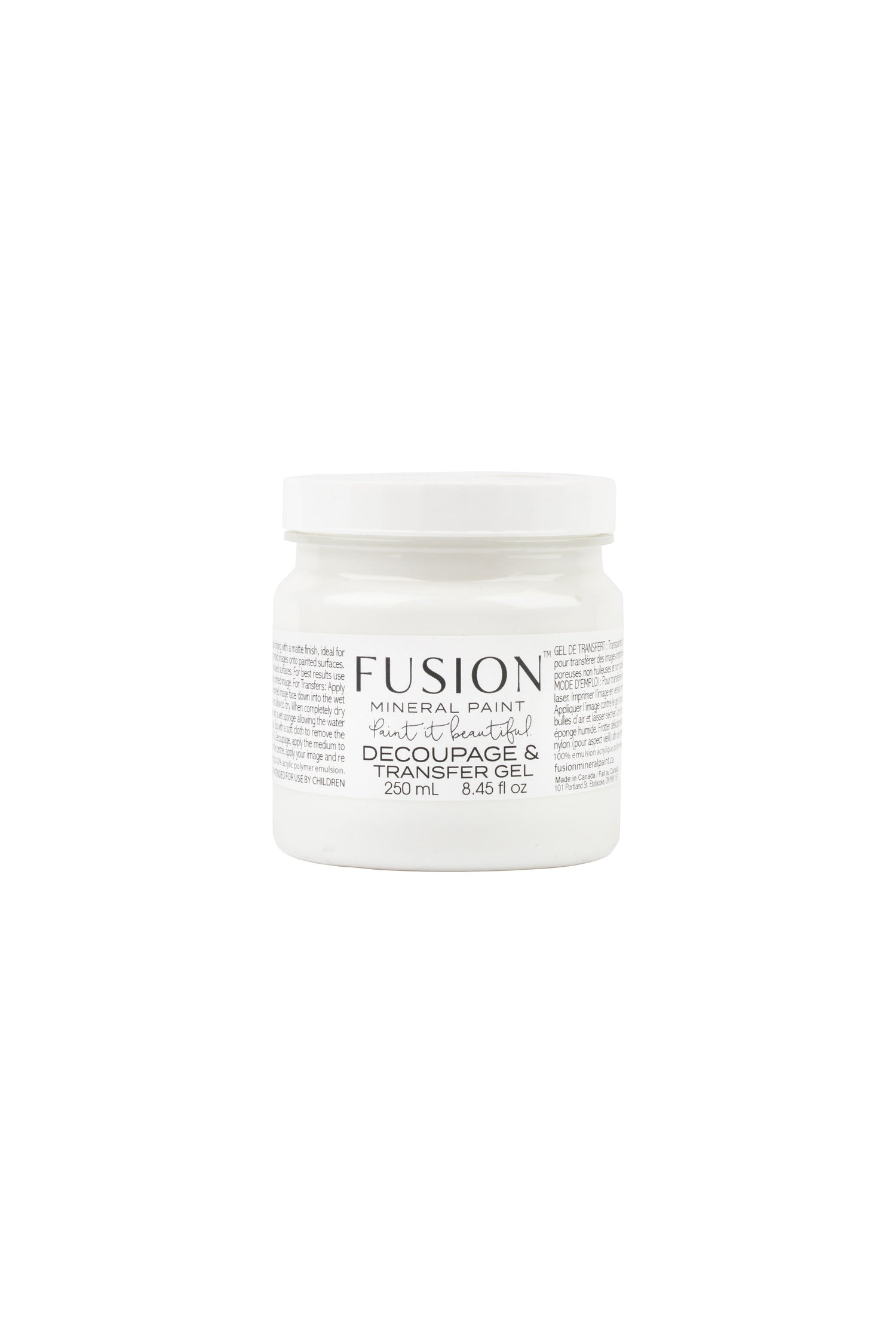 Fusion Decoupage and Transfer Gel is a waterbased, thin, matte finish, clear drying, adhesive, transfer on to non-oily or greasy, porous surfaces. Ideal for wood and paper products. Liquid allows for finer detail, useful for smaller transfers. It is quick drying and water resistant. Use for transferring printed images and text, collage and decoupage. Designed for interior applications. Contains no VOCs.